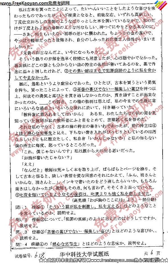 专业课考研经验 本站小编 FreeKaoyan 2018-01-23华中科技大学2007年考研真题-汉语言文学基础