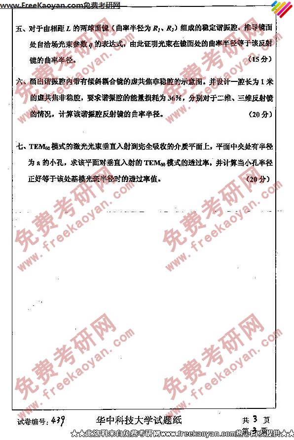 专业课考研经验 本站小编 FreeKaoyan 2018-01-23华中科技大学2007年考研真题-固体物理