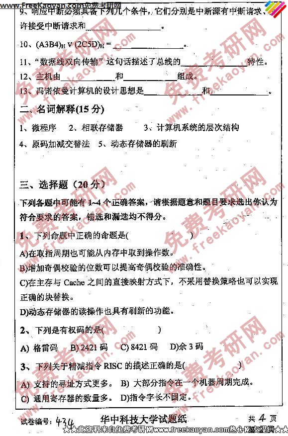 华中科技大学2007年考研真题-计算机组成原理(2)