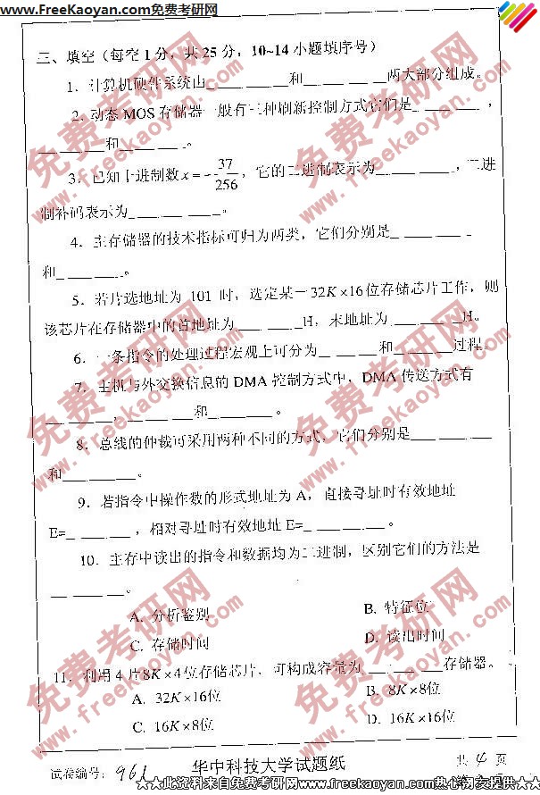 华中科技大学2007年考研真题-计算机组成原理961(2)