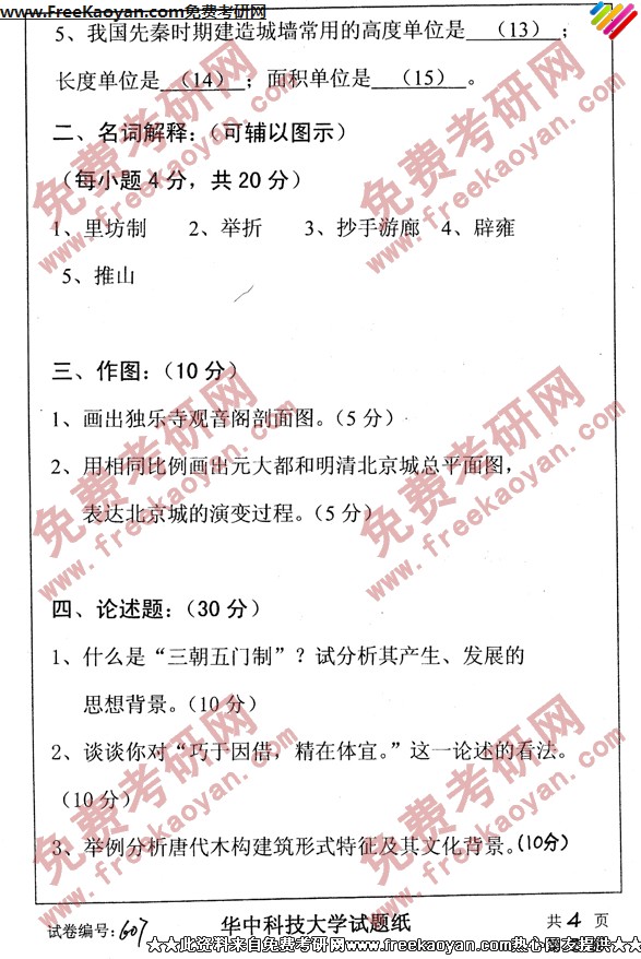 专业课考研经验 本站小编 FreeKaoyan 2018-01-23华中科技大学2007年考研真题-规划设计6小时快题