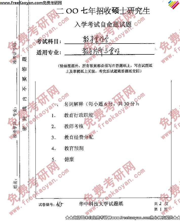相关话题/考研真题 华中科技大学 管理学 教育