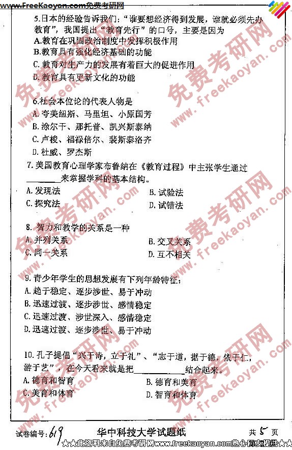 专业课考研经验 本站小编 FreeKaoyan 2018-01-23华中科技大学2007年考研真题-教育经济学