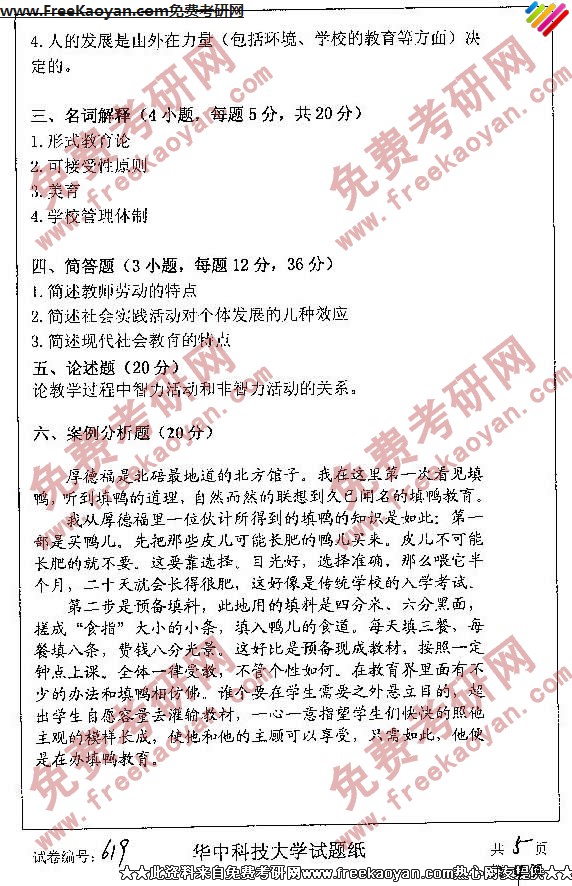 专业课考研经验 本站小编 FreeKaoyan 2018-01-23华中科技大学2007年考研真题-教育经济学