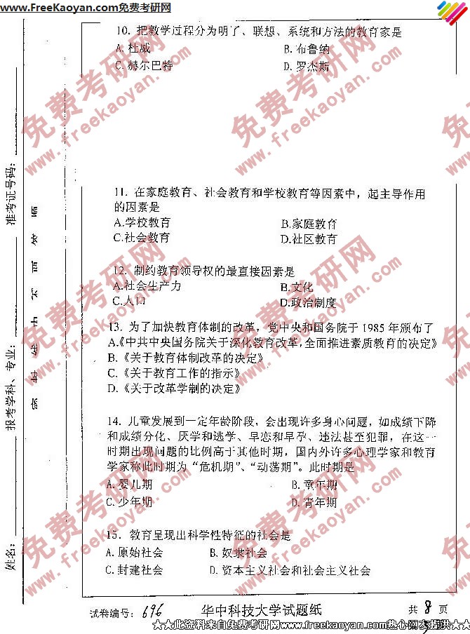 专业课考研经验 本站小编 FreeKaoyan 2018-01-23华中科技大学2007年考研真题-教育管理学