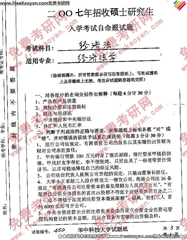 专业课考研经验 本站小编 FreeKaoyan 2018-01-23华中科技大学2007年考研真题-教育经济学