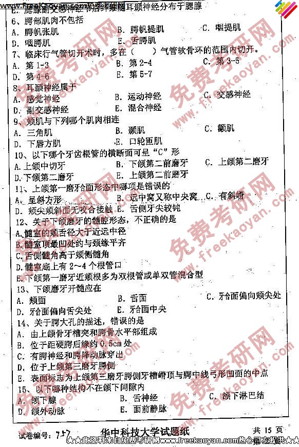 相关话题/华中科技大学 考研真题 口腔综合