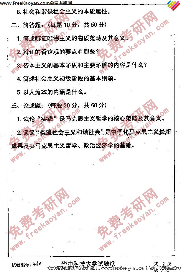 相关话题/华中科技大学 考研真题 马克思主义基本原理