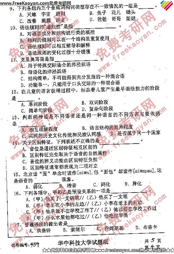 专业课考研经验 本站小编 FreeKaoyan 2018-01-23华中科技大学2007年考研真题-离散数学