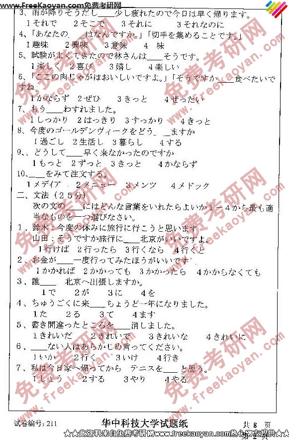 相关话题/考研真题 华中科技大学 外国语言学 日语