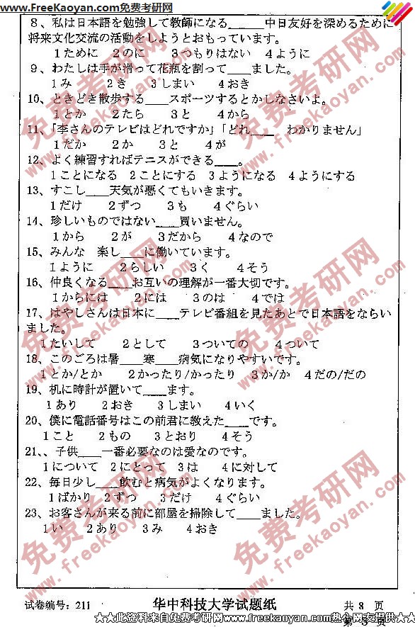 相关话题/考研真题 华中科技大学 外国语言学 日语