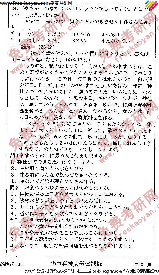 相关话题/考研真题 华中科技大学 外国语言学 日语