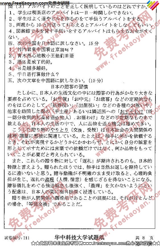 相关话题/考研真题 华中科技大学 外国语言学 日语