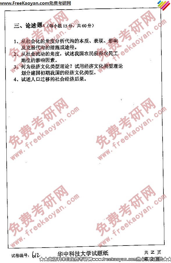 专业课考研经验 本站小编 FreeKaoyan 2018-01-23华中科技大学2007年考研真题-教育学综合