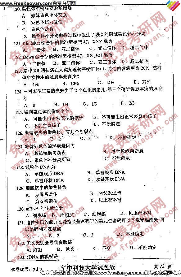 相关话题/考研真题 华中科技大学 综合 生物