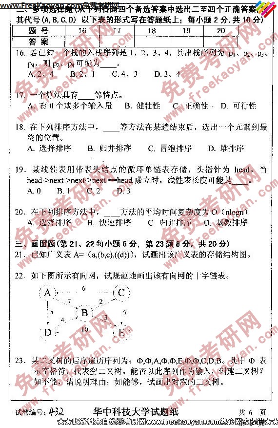 相关话题/华中科技大学 考研真题 数据结构