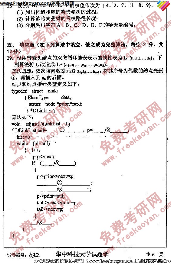 专业课考研经验 本站小编 FreeKaoyan 2018-01-23华中科技大学2007年考研真题-软件基础