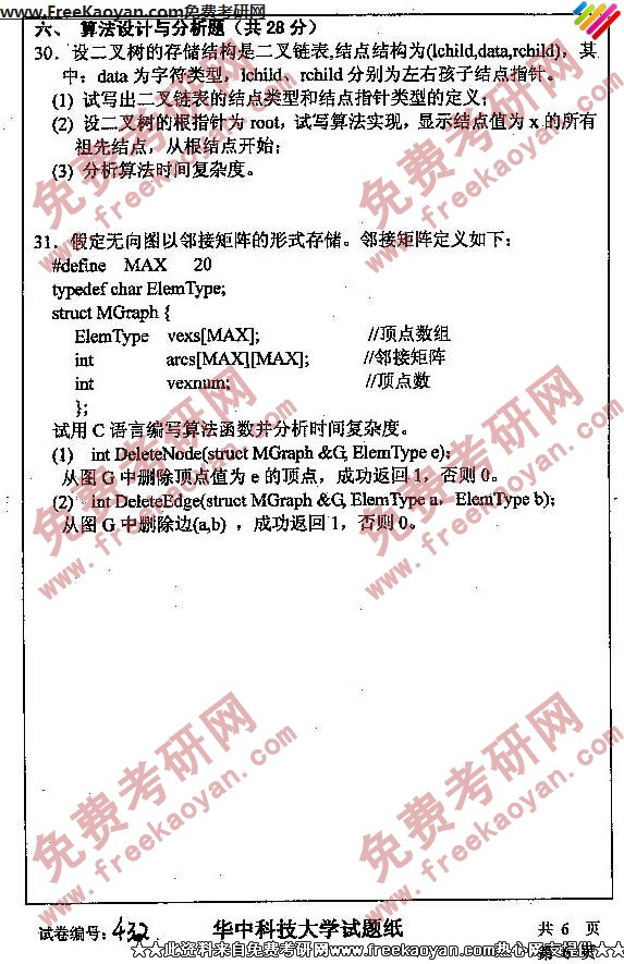 华中科技大学2007年考研真题-数据结构(6)