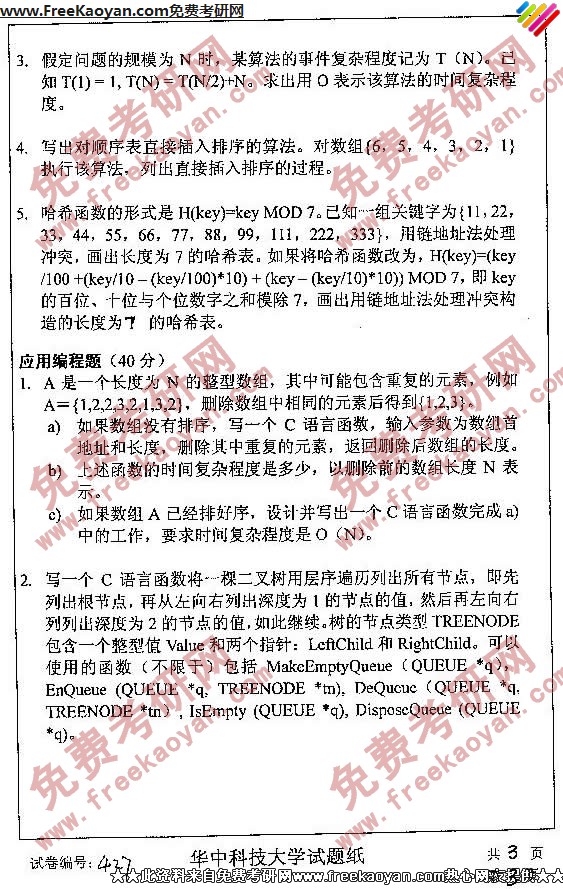 华中科技大学2007年考研真题-数据结构与算法分析(3)