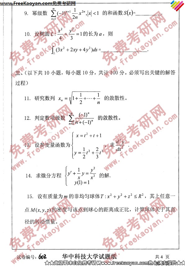 华中科技大学2007年考研真题-数学(含高等数学线性代数)(3)