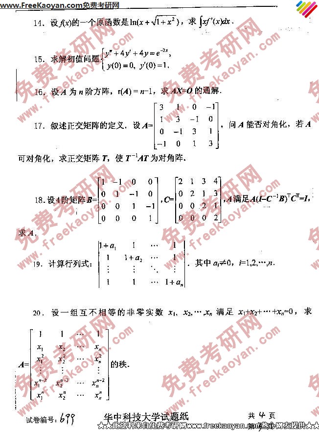 相关话题/华中科技大学 考研真题 数学