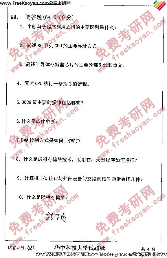 专业课考研经验 本站小编 FreeKaoyan 2018-01-23华中科技大学2007年考研真题-生物化学与分子生物学952