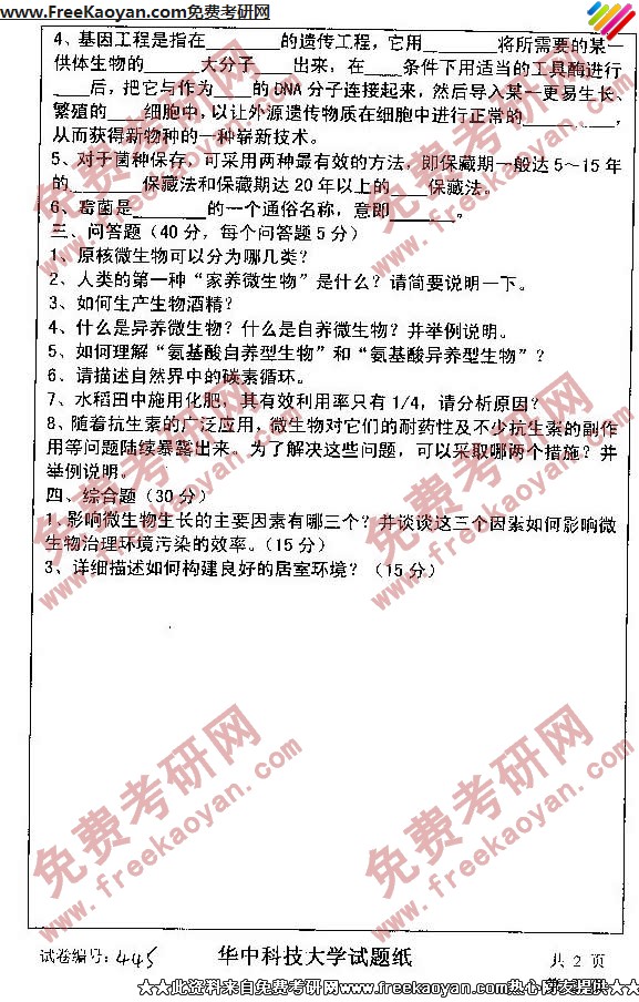 专业课考研经验 本站小编 FreeKaoyan 2018-01-23华中科技大学2007年考研真题-生物综合
