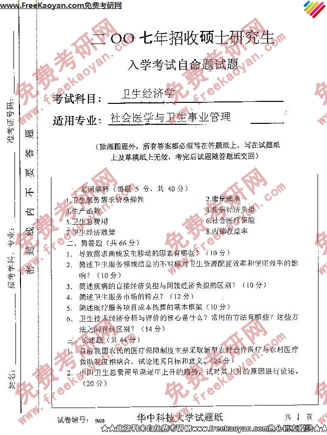 相关话题/考研真题 华中科技大学 经济学 卫生