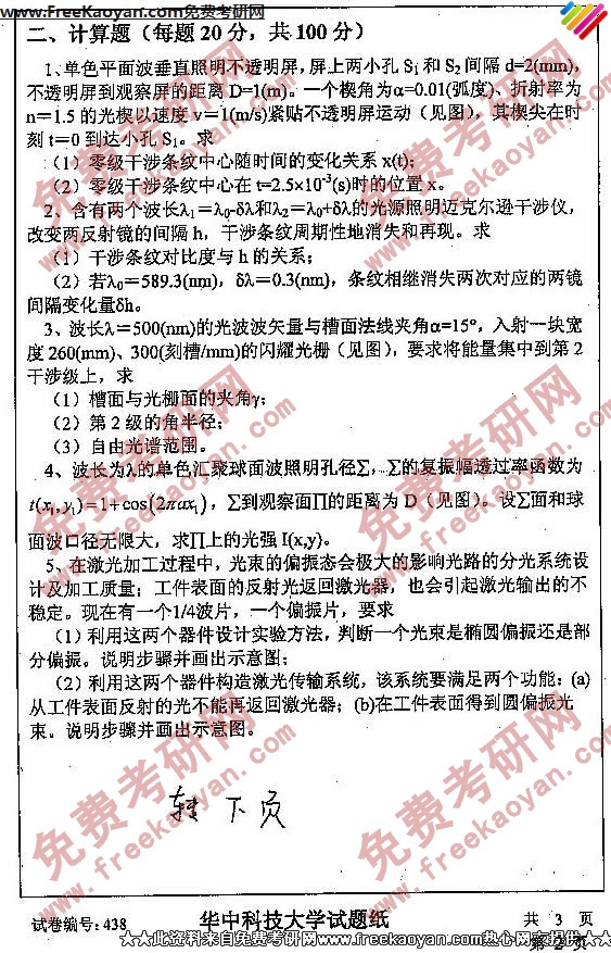 专业课考研经验 本站小编 FreeKaoyan 2018-01-23华中科技大学2007年考研真题-数学(含高等数学线性代数)