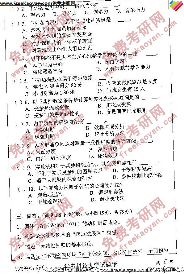 相关话题/考研真题 华中科技大学 综合 心理学基础