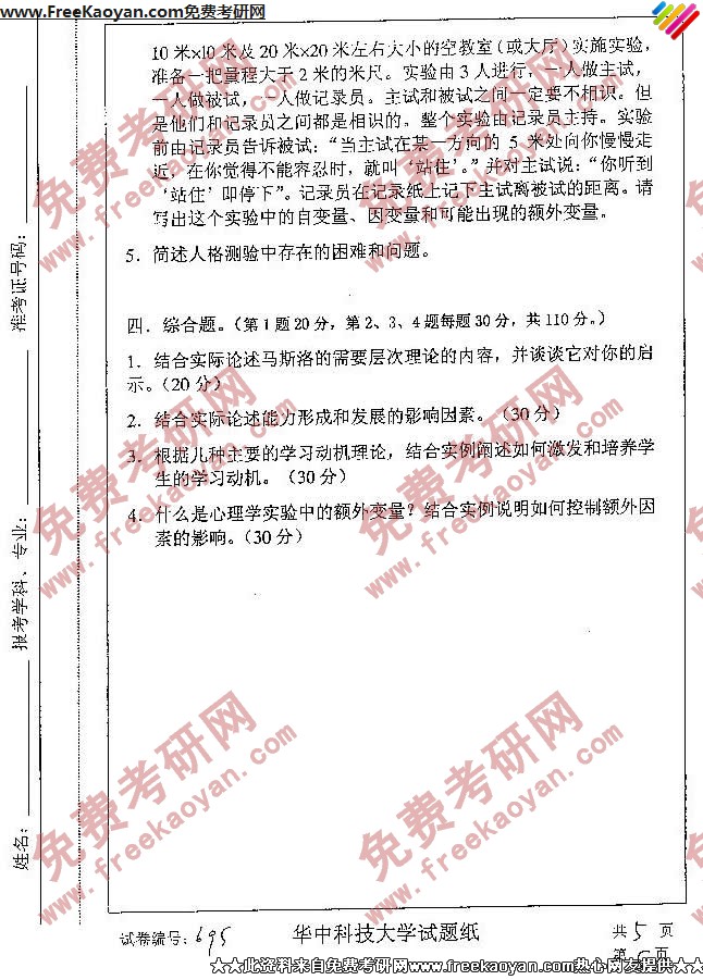 相关话题/考研真题 华中科技大学 综合 心理学基础