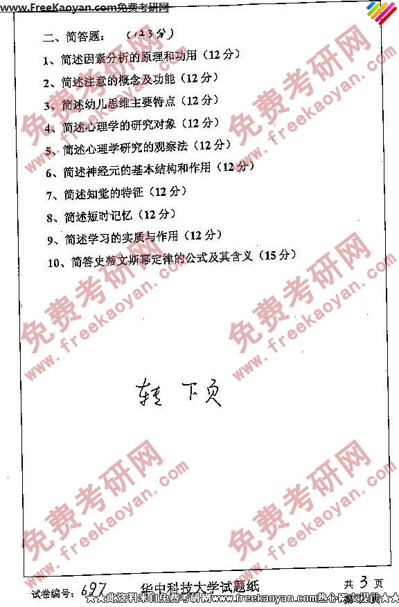 华中科技大学2007年考研真题-心理学基础综合697(2)