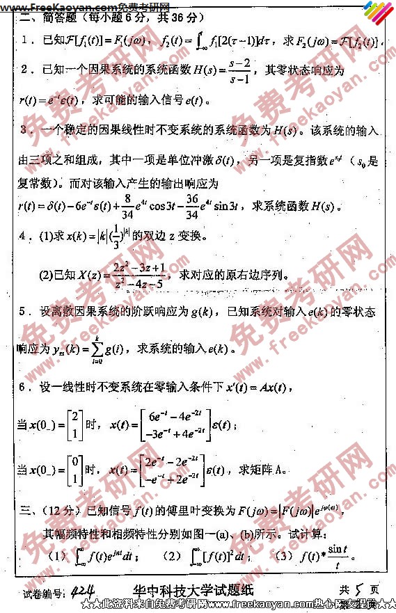相关话题/考研真题 华中科技大学 信号 系统 线性