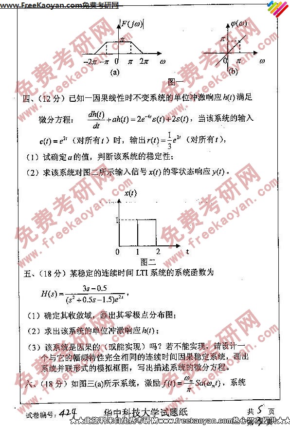华中科技大学2007年考研真题-信号与线性系统(3)