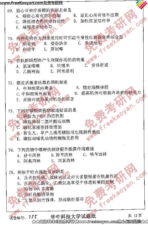 专业课考研经验 本站小编 FreeKaoyan 2018-01-23华中科技大学2007年考研真题-物理化学