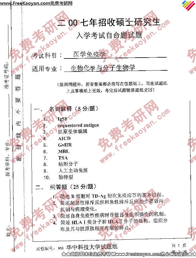 相关话题/考研真题 华中科技大学 免疫学 医学