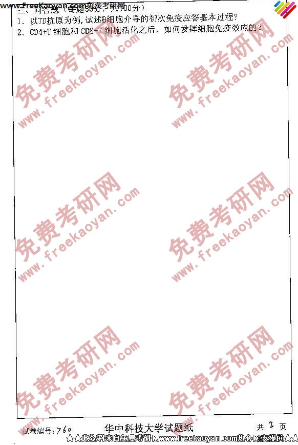 相关话题/考研真题 华中科技大学 免疫学 医学