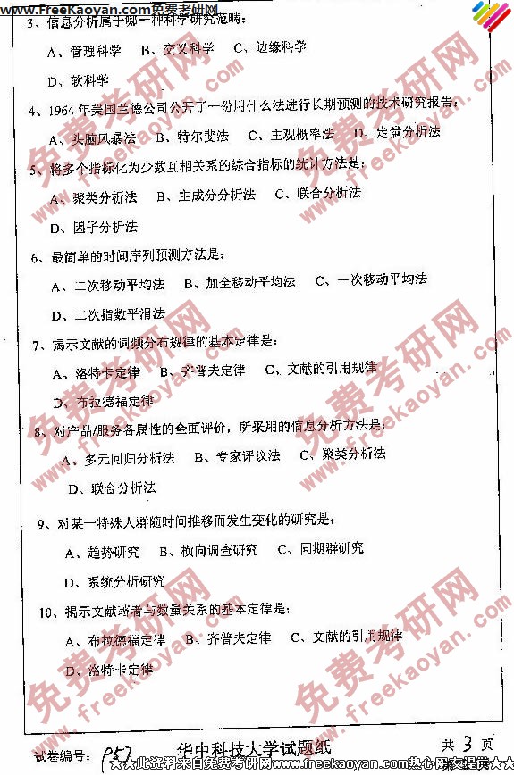 专业课考研经验 本站小编 FreeKaoyan 2018-01-23华中科技大学2007年考研真题-信息管理理论