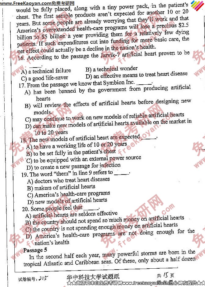 专业课考研经验 本站小编 FreeKaoyan 2018-01-23华中科技大学2007年考研真题-医学信息分析与预测