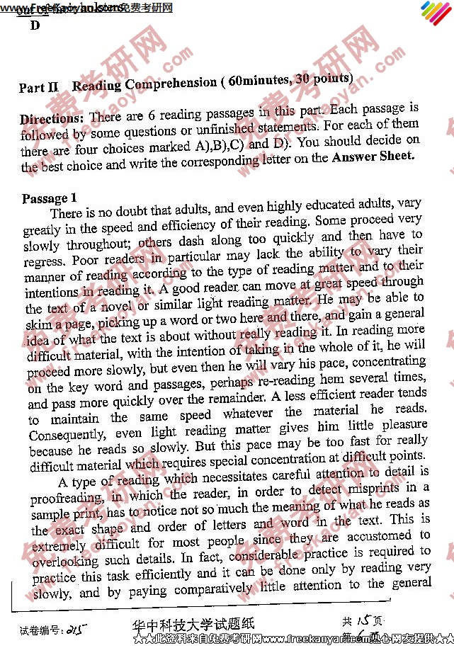 专业课考研经验 本站小编 FreeKaoyan 2018-01-23华中科技大学2007年考研真题-心理学基础综合697