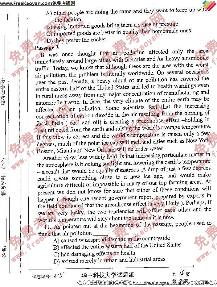 相关话题/华中科技大学 考研真题 英语