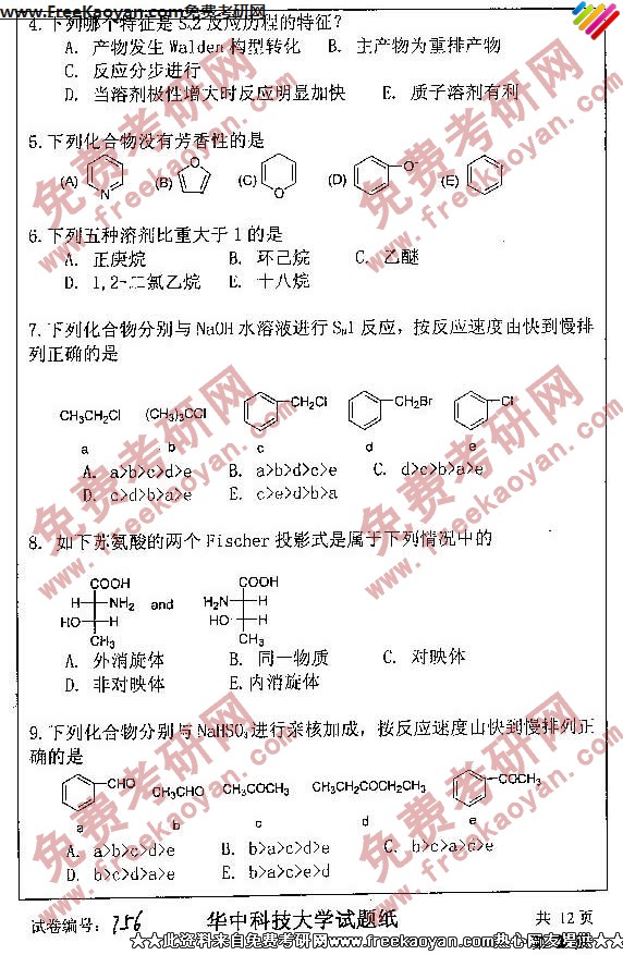专业课考研经验 本站小编 FreeKaoyan 2018-01-23华中科技大学2007年考研真题-药学综合