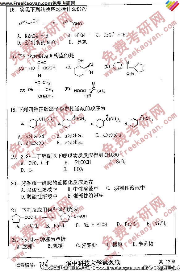 专业课考研经验 本站小编 FreeKaoyan 2018-01-23华中科技大学2007年考研真题-药学综合