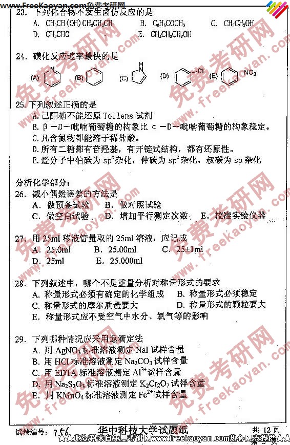 专业课考研经验 本站小编 FreeKaoyan 2018-01-23华中科技大学2007年考研真题-药学综合