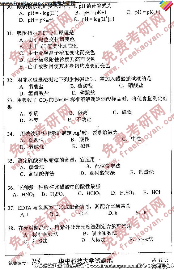 专业课考研经验 本站小编 FreeKaoyan 2018-01-23华中科技大学2007年考研真题-药学综合