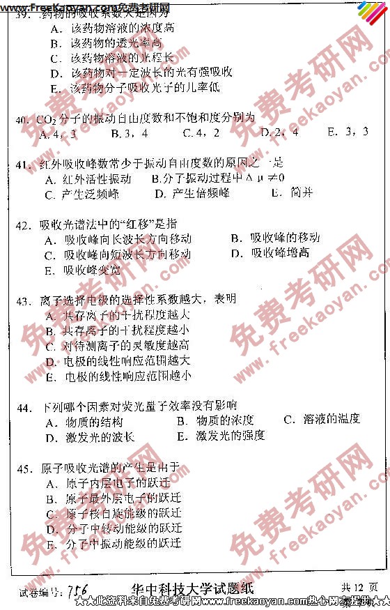 专业课考研经验 本站小编 FreeKaoyan 2018-01-23华中科技大学2007年考研真题-药学综合