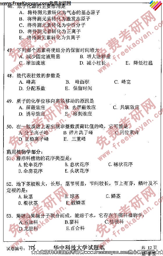 专业课考研经验 本站小编 FreeKaoyan 2018-01-23华中科技大学2007年考研真题-药学综合