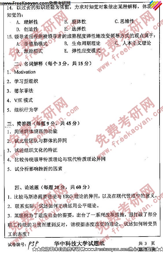专业课考研经验 本站小编 FreeKaoyan 2018-01-23华中科技大学2007年考研真题-英语专业综合