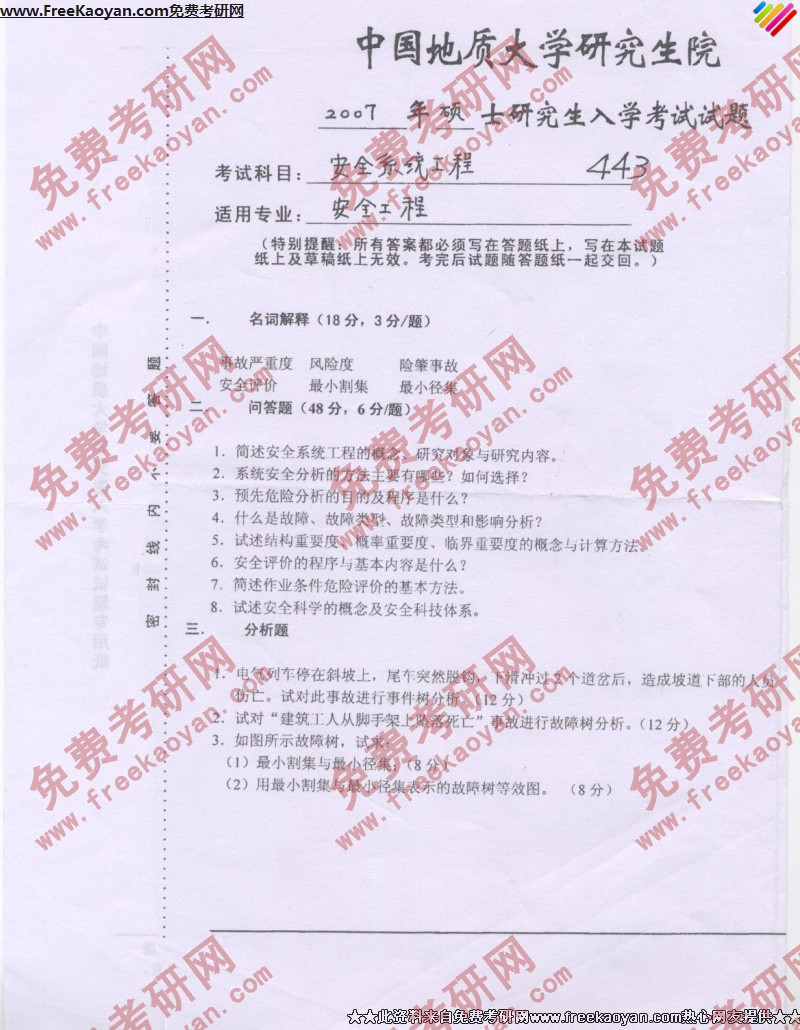 中国地质大学(武汉)2007年考研真题-安全系统工程