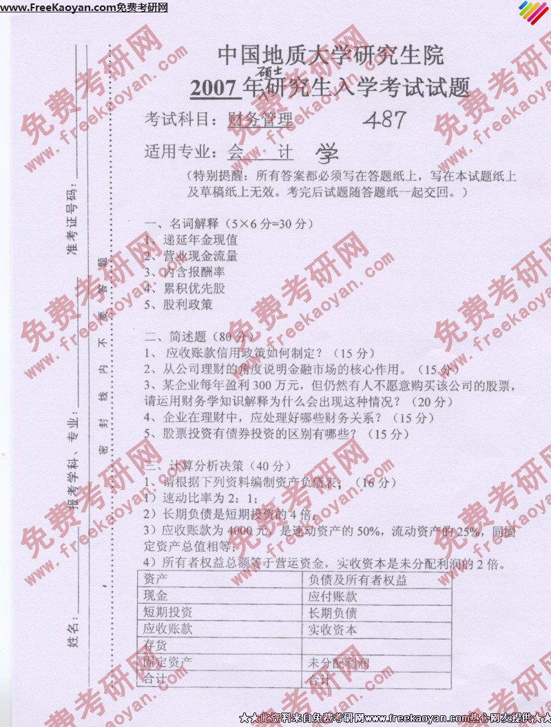 专业课考研经验 本站小编 FreeKaoyan 2018-01-23中国地质大学(武汉)2007年考研真题-安全系统工程